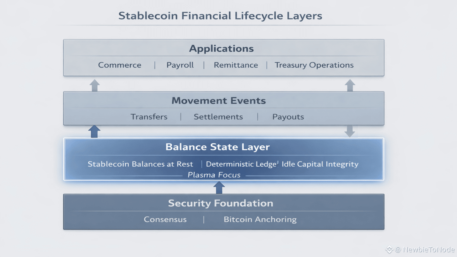 Instead of optimizing for nonstop activity, Plasma treats stablecoin balances as something that must remain reliable while idle. USDT on Plasma is not assumed to be in flight. It is assumed to be parked somewhere meaningful. A store of operating capital. A float for payments. A balance waiting for instruction from a business, not from a market.