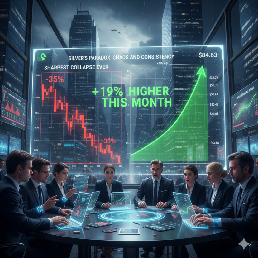 În ciuda acelei carnaje istorice, argintul este pe cale să încheie ianuarie cu +19% mai sus, menținându-și o legendă de 9 luni de câteva câștiguri. Din mai 2025, "Metalul Diavolului" a sfidat fiecare așteptare legată de gravitate: