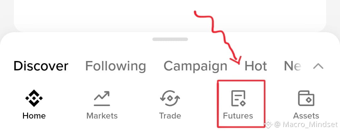 โFirst things first: open your Binance app and hit the Futures icon at the bottom. Itโs the one that looks like a little notepad with a diamond.๐๐