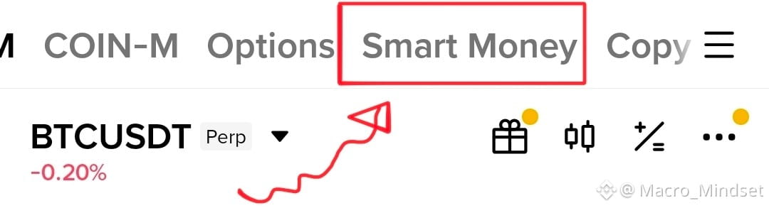 โOnce you're in the Futures screen, look at the top menu. Youโll see options like COIN-M and Optionsโkeep sliding until you see Smart Money. Tap that. This is where Binance tracks the most successful and largest accounts on the platform.