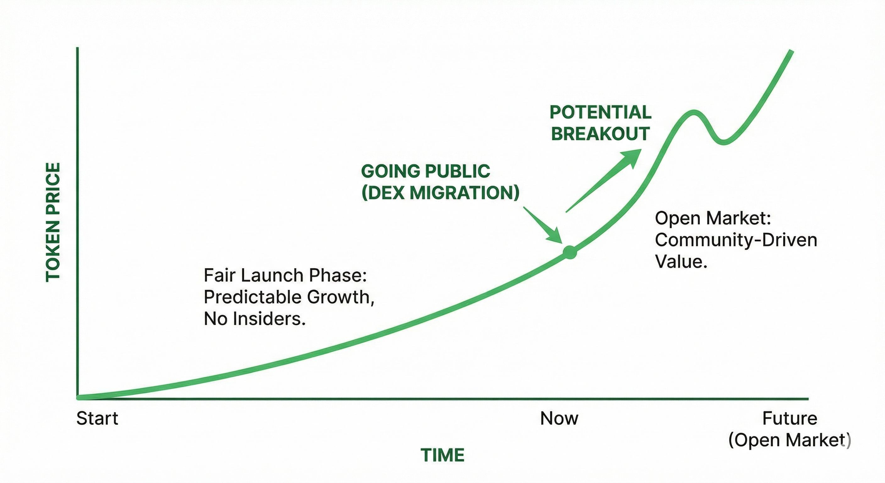 Devenind Public: Acesta este momentul important când faza inițială se încheie și tokenul se mută pe piața liberă.