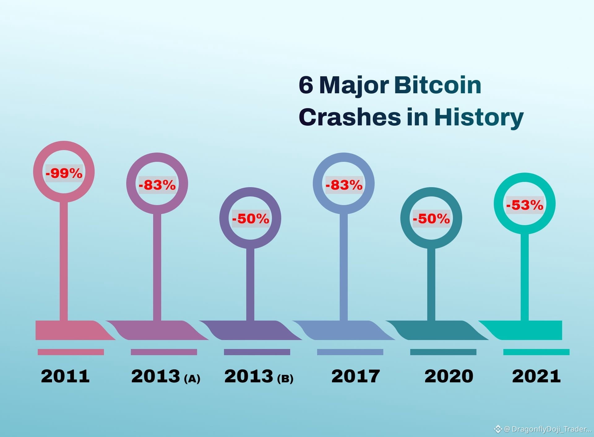Bitcoin has experienced 6 major crashes in its history, with drops as severe as 99%. Despite these tumultuous falls, Bitcoin has always come back stronger.