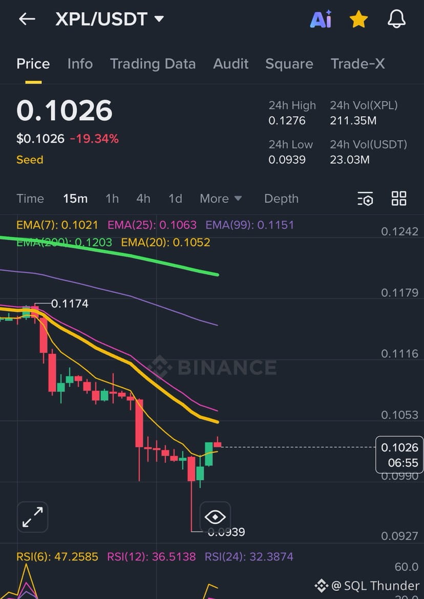 $XPL is trading around 0.10 to 0.12 US dollars on major venues right now, with some order books printing lows near 0.099 and isolated flashes deeper that explain the 0.09 prints some traders reported.