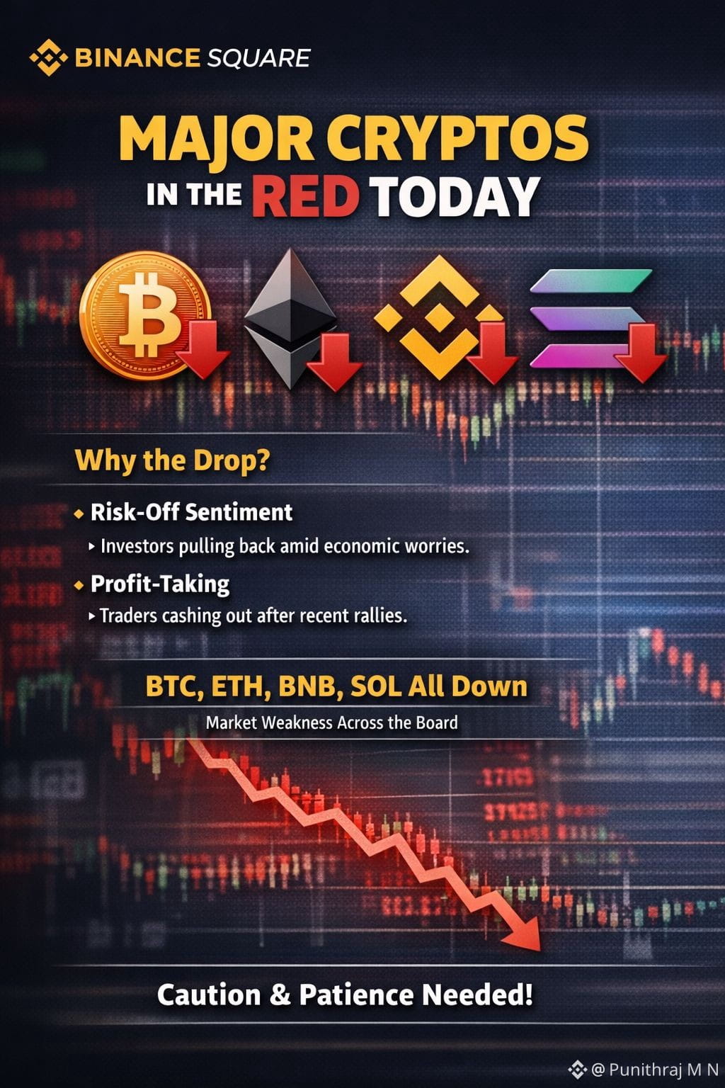 Today, the cryptocurrency market experienced a broad pullback.$BTC ,$BNB , $BNB , and Solana (SOL)all saw notable declines, reminding investors how volatile even major tokens can be.
