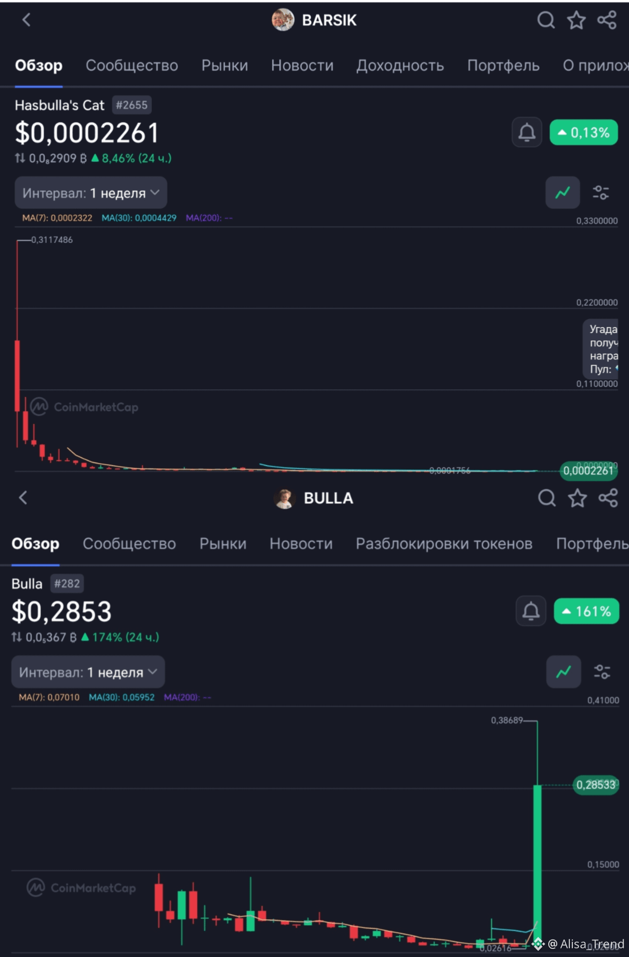 Это вам для понимания график Барсика, он за 4 дня взлетел примерно на 7500%, а потом как вы видете пошел на дно😂