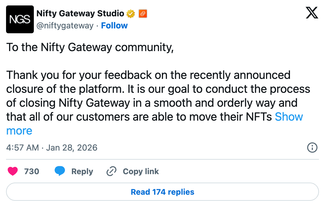 Nifty Gateway va închide platforma de tranzacționare NFT în februarie