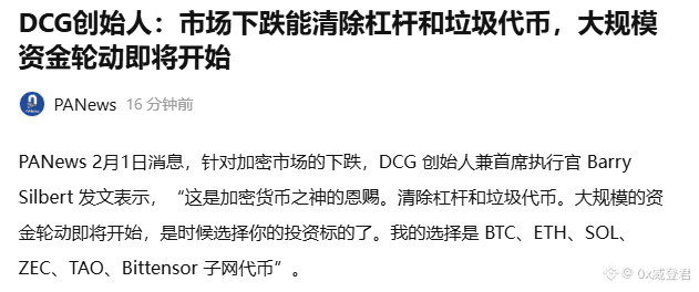 Barry Silbert 的发文,看似逆市场恐慌而行,实则精准戳中加密周期的核心逻辑 ——当前的暴跌不是危机,而是市场的 “自我净化”,更是资金轮动的前置信号,每一句表态都能被当下市场现状与行业规律印证,绝非空穴来风。