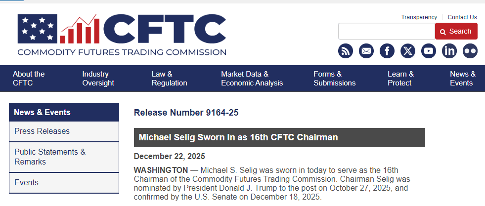Cập nhật tin tức tài chính gần đây là thấy rõ, Mỹ đang đổi cách chơi với crypto. Trước giờ thì hoặc là để nó nằm trong vùng xám, hoặc là dập mạnh để đẩy ra nước ngoài. Còn hiện tại, hướng đi có vẻ khác: đưa crypto, DeFi và cả phái sinh vào khuôn khổ quản lý chính thức, để CFTC với SEC cùng tham gia điều phối, thay vì mạnh ai nấy làm như trước.. Cũng trong ngày 29/1, tân Chủ tịch CFTC Michael S. Selig đã có lần xuất hiện công khai đầu tiên trên cương vị mới tại một sự kiện chung giữa CFTC và SEC.