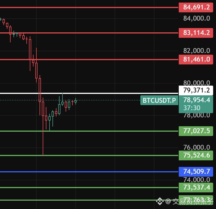 如果今天反弹上不去79370上方那说明小级别反弹没有力度,继续往下下方支撑位留意77025-75520-74510这几个位置附近!#BTC走势分析