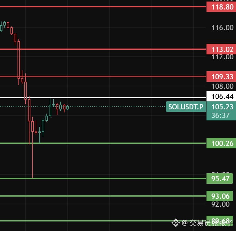 如果今天反弹上不去106上方那说明小级别反弹没有力度,继续往下下方支撑位留意100-95-93这几个位置附近!#solana