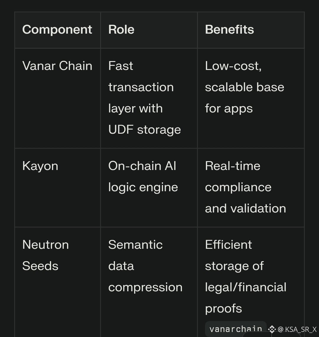 Vanar’s stack includes specialized layers for intelligent functionality: