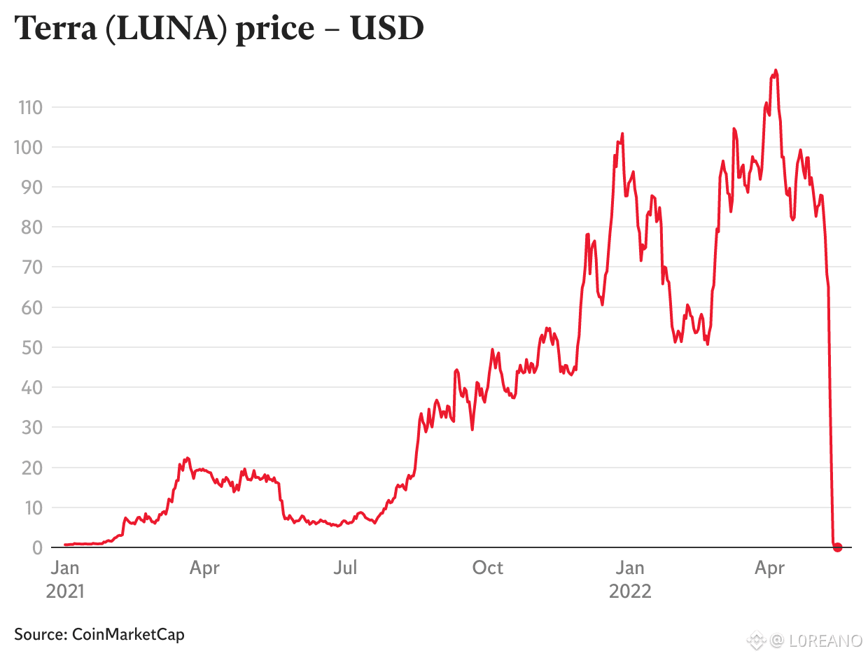 $LUNA (Terra) $LUNC , top 5-10 en mai 2021 → Crash total en 2022 → Version LUNA 2.0 existe mais vaut des fractions de centimes comparé à l’ancien ATH (~$119 → quasi-zéro effectif pour les holders originaux, perte ~100 %). Le crash iconique de LUNA :