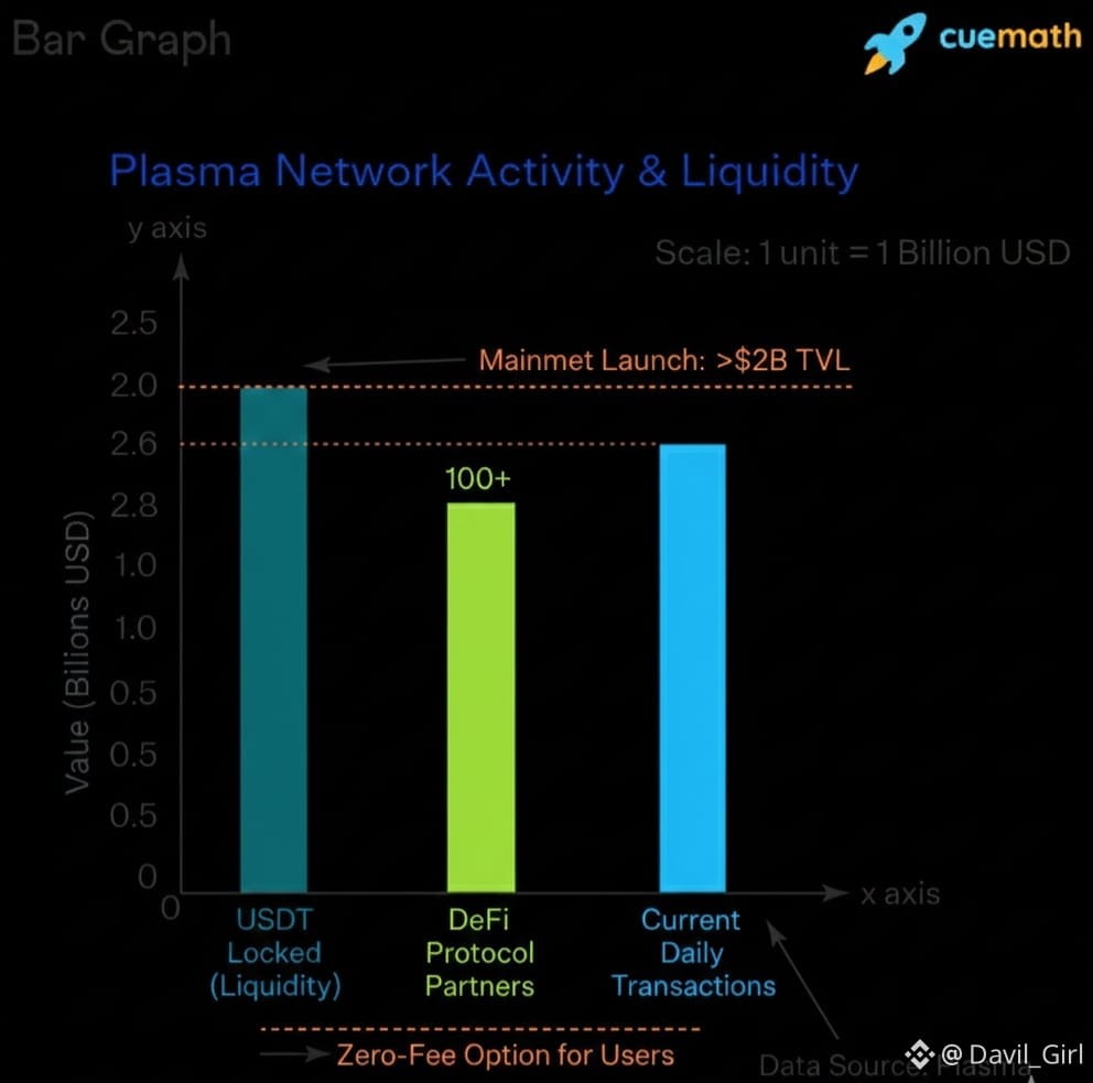 When you look at Plasma’s current network activity and data you do not see an empty shell or a test project. You see a busy stablecoin chain with billions in liquidity. Plasma launched its mainnet beta with more than 2 billion USDT and other stablecoins locked and ready for use, backed by partnerships with more than 100 DeFi protocols. That kind of liquidity is unusual for a brand new blockchain and shows this idea of stablecoin first infrastructure has real demand.