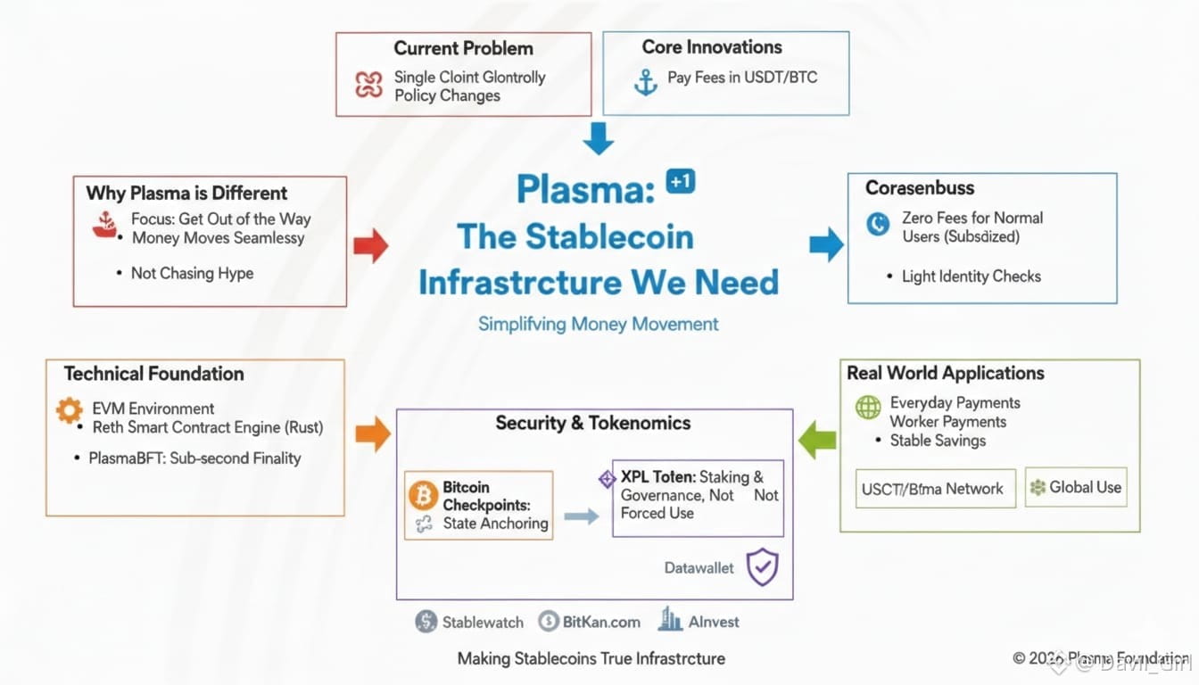 Stablecoins like USDT already act like real money for millions of people around the world. They are used for everyday payments, sending money across borders, paying workers, and keeping savings in a faster way than old‑fashioned banks. The strange part is not the stablecoin. The strange part is how complicated it still is to move it around. On most blockchains you need some other token to pay fees. You buy it, you worry about gas prices, sometimes transactions fail because you did not have the right coin. Plasma asks a simple question: if stablecoins act like money then why are we treating them like a test experiment instead of real money infrastructure.