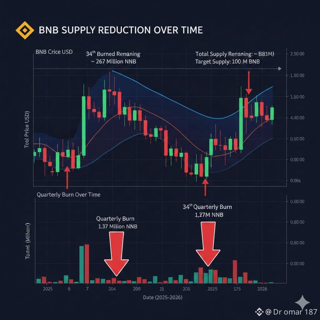 Supply dynamics remain one of BNB's strongest fundamental drivers. The 34th Quarterly Burn (January 15, 2026) successfully removed over 1.37 million BNB from circulation—roughly $1.27 billion in value.