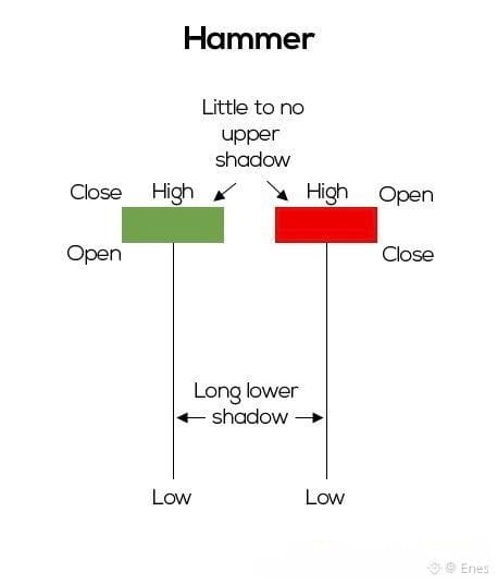 Long lower wick, small body. Price gets rejected at lower levels → potential bullish reversal after a downtrend.