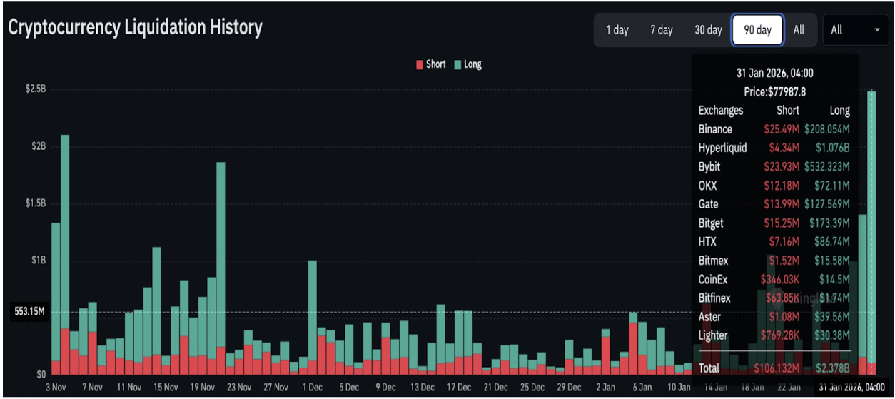 Bitcoinul care coboară sub 80K $ nu a rănit doar comercianții... a declanșat una dintre cele mai urâte cascade de lichidare pe care crypto le-a văzut vreodată. Vorbim de aproximativ 2.5 MILIARDE $ în poziții cu levier care dispar într-o singură undă 🤯📉