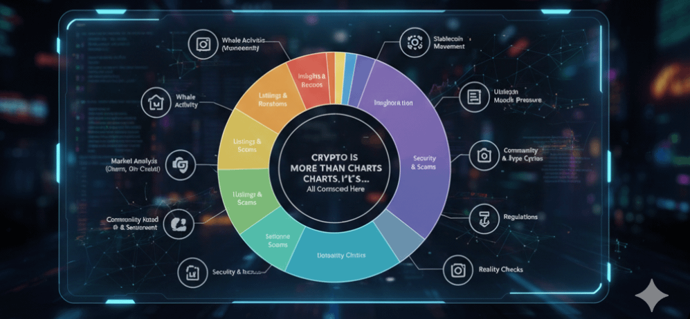 Sunt narațiuni, listări, rotații, mișcări de stablecoin, activitate de balenă, presiune de deblocare, cicluri de hype, verificări ale realității, probleme de securitate, escrocherii, reglementări și starea comunității. Ceea ce contează este să vezi cum toate aceste lucruri se conectează.