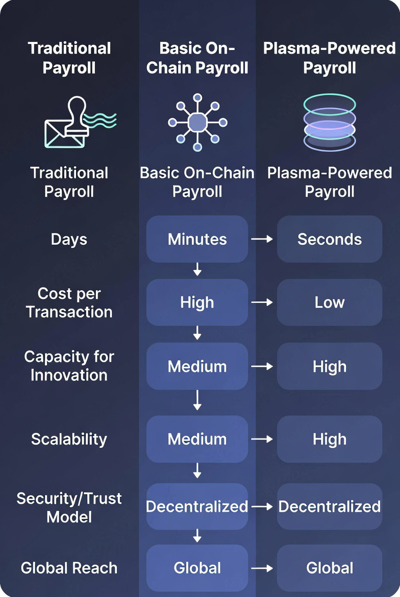 Emerging platforms represent a new category: the on-chain payroll operating system. They are not merely a new payment method but a foundational re-architecture of payroll logic. They leverage blockchain technology, stablecoins (digital currencies pegged 1:1 to assets like the U.S. dollar), and crucially, scaling solutions like Plasma to create a seamless, global, and user-controlled payment layer.