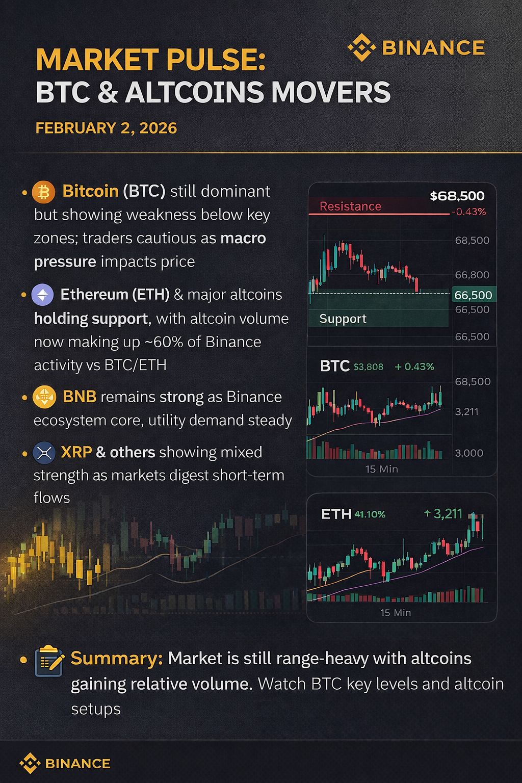 🔸 Ethereum ($ETH ) & principalele altcoins mențin suport, cu volumul altcoin acum reprezentând ~60% din activitatea Binance în comparație cu BTC/ETH.