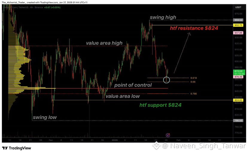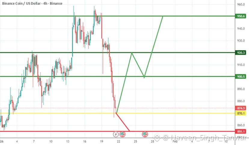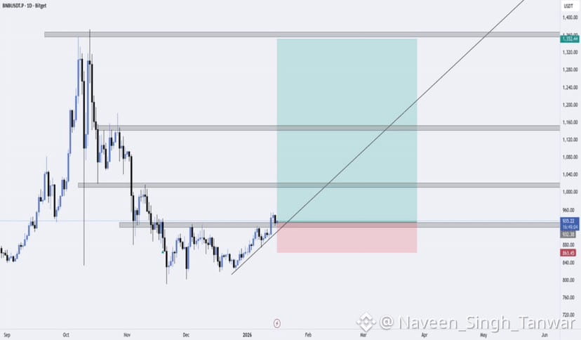BNB ne recent volatility ke baad higher-low formation maintain ki hai — jo strength show karta hai jab baaki market weak lag rahi ho.