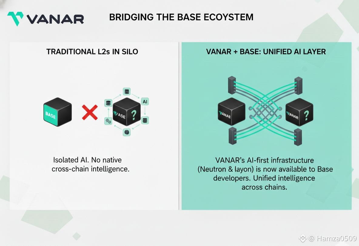 The blockchain industry has long suffered from the "Island Effect"—isolated networks that possess great technology but struggle to reach the wider ocean of users and liquidity. In 2026, @Vanarchain (VANRY) is officially breaking those silos. By making its AI-first infrastructure available on Base, Vanar is no longer just an ambitious Layer 1; it is becoming the universal "Intelligence Layer" for the entire Ethereum ecosystem.