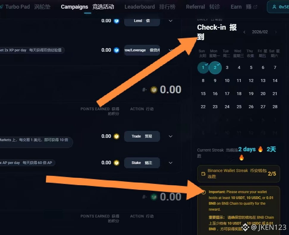 (USDT/USDC),BNB,并且每天记得用电脑插件点一下。不要断签,不然就要重新计算了。