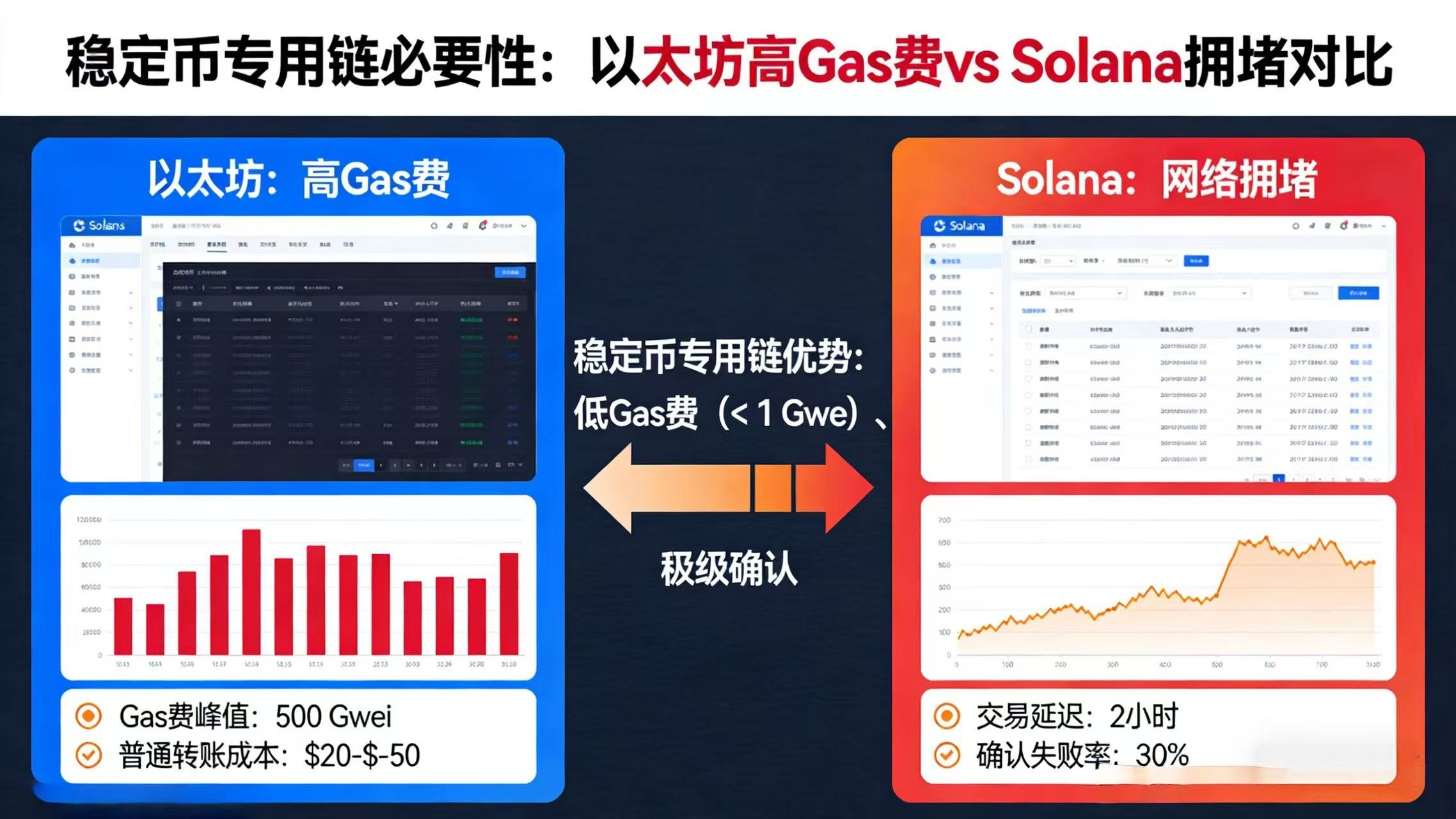 传统区块链在设计上追求通用性,但稳定币支付需要的是极致专业化。当用户在以太坊上支付$5的USDT可能需要$10的Gas费,或在Solana上遭遇临时拥堵时,稳定币的"稳定"价值主张就被底层基础设施削弱了。
