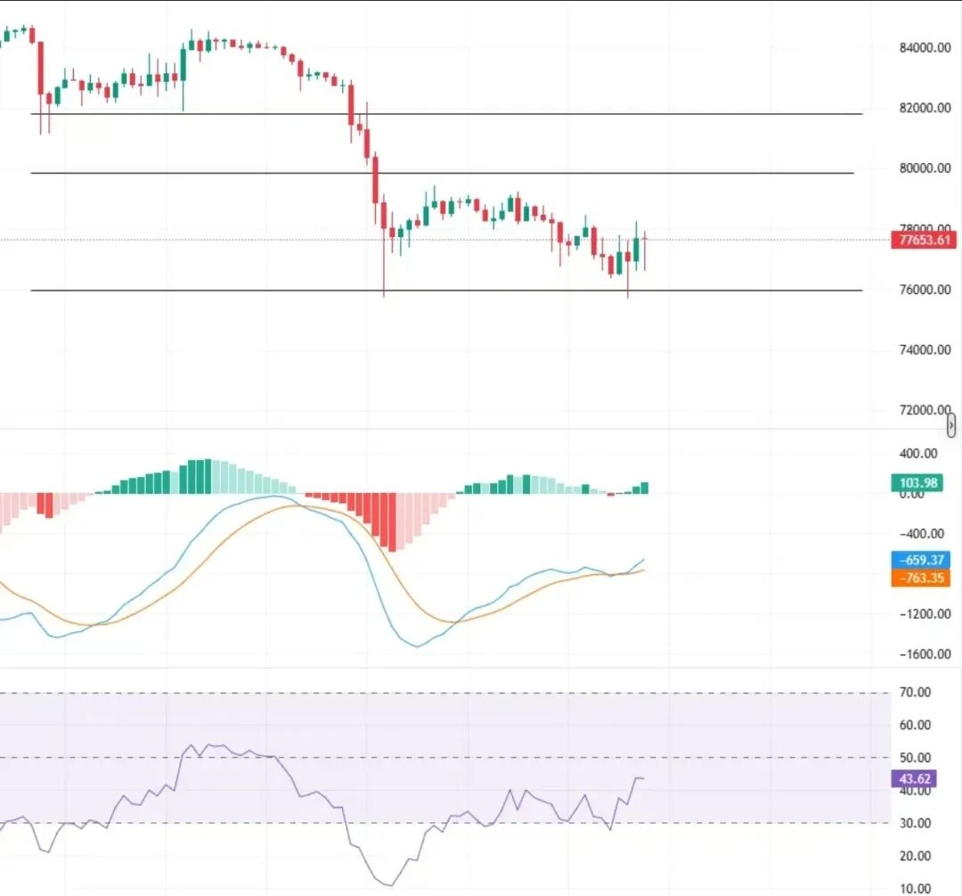 Piața se află în continuare într-o fază de corecție tehnică sub conducerea vânzătorilor, recomandând investitorilor să fie prudenți și să prioritizeze controlul riscurilor. Pentru Bitcoin, se poate urmări îndeaproape eficiența suportului de 76000 de dolari. Dacă se obține suport aici, se poate încerca o revenire cu o poziție mică, având ca obiectiv 80000-82000 de dolari; invers, dacă suportul este spart, ar trebui să se prevină riscurile de scădere suplimentare.