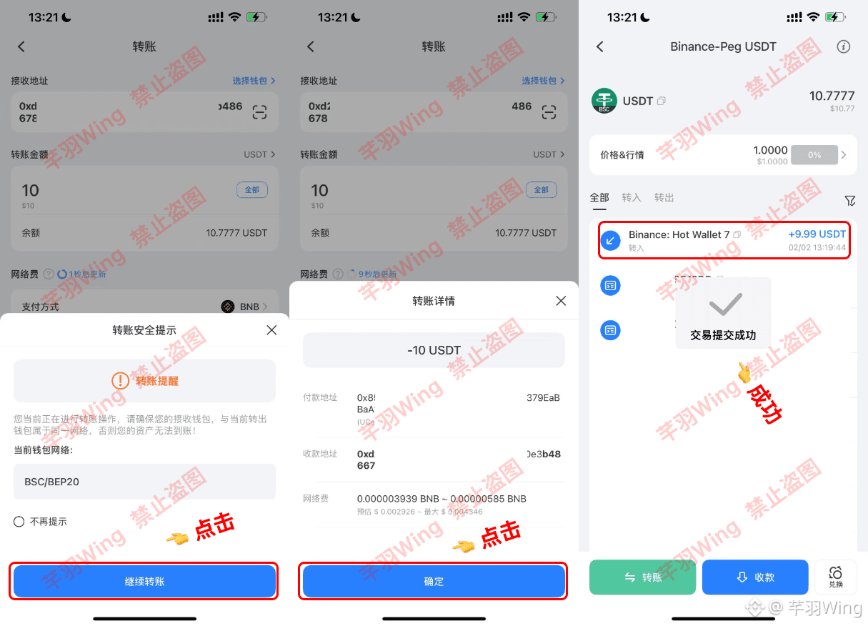 多说一句:BSC网络、ETH、BASE等同属于EVM系,地址通用,但是养成好习惯!