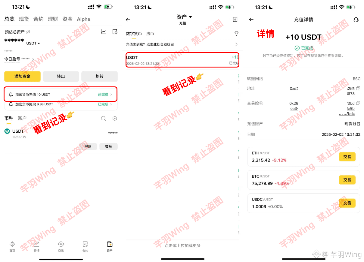 第三方**或钱包充值到币安平台