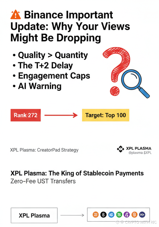 If you've noticed your reach on the Square stalling, it's not bad luck—the rules for the CreatorPad just changed. Binance is now cracking down on "spam" to make room for real, high-quality content. Here’s the simple breakdown: