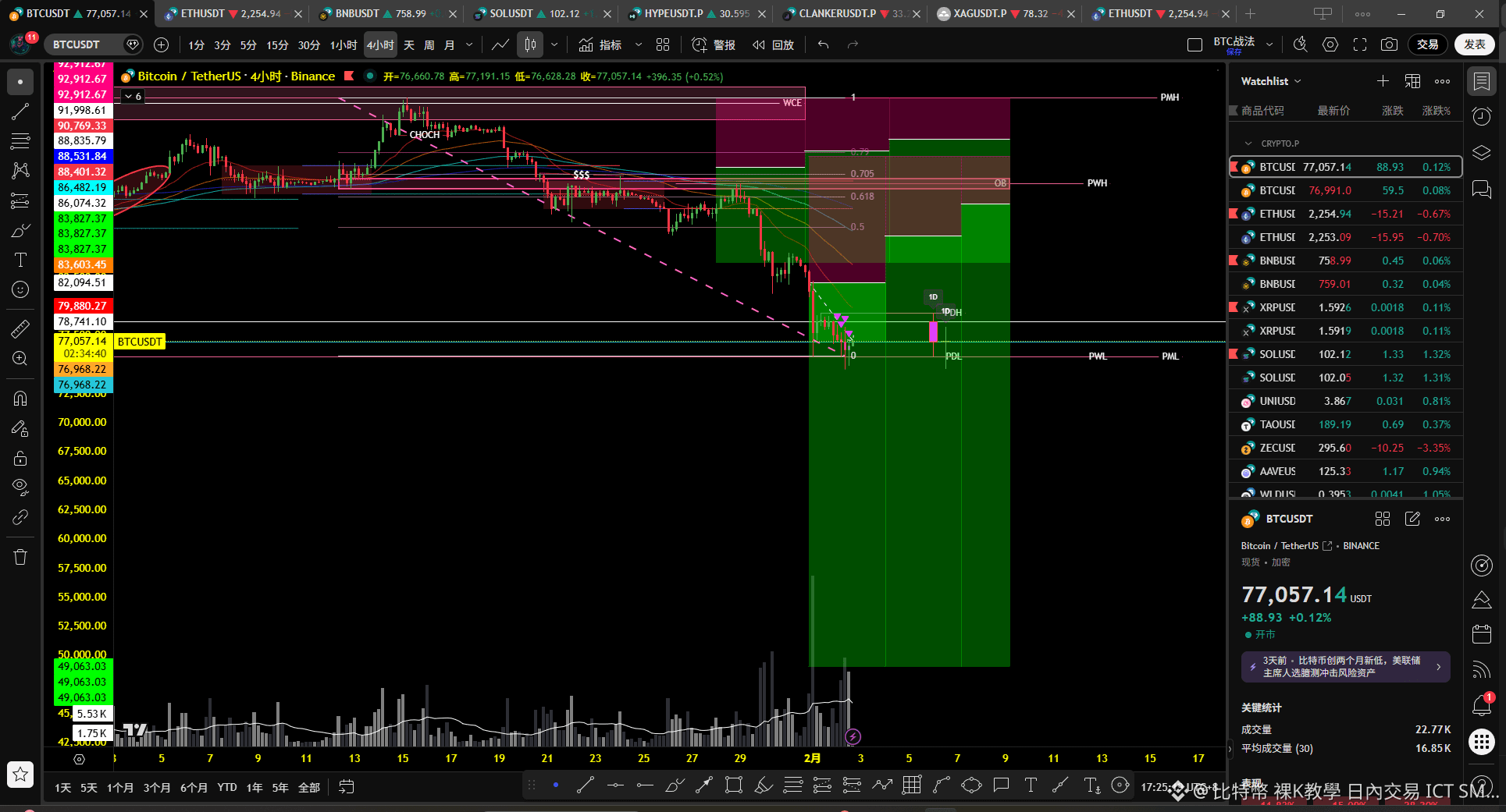 我會關注中時間級別是否出現市場轉變;
