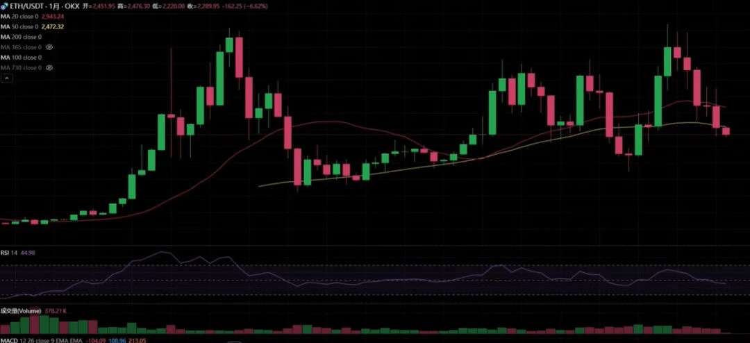 • 月线收于 MA50 下方,极为罕见。$2800 和 $2500 两个关键支撑位均已告破,现已转化为巨大阻力。