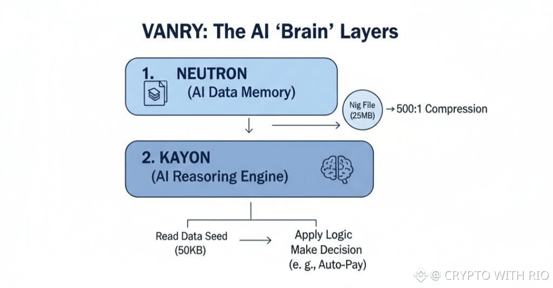 Vanar isn't just a digital notebook. It has an AI brain called Kayon. It can read the data stored in Neutron and make decisions. For example, it can check a contract and send a payment automatically without a human needing to click "approve."