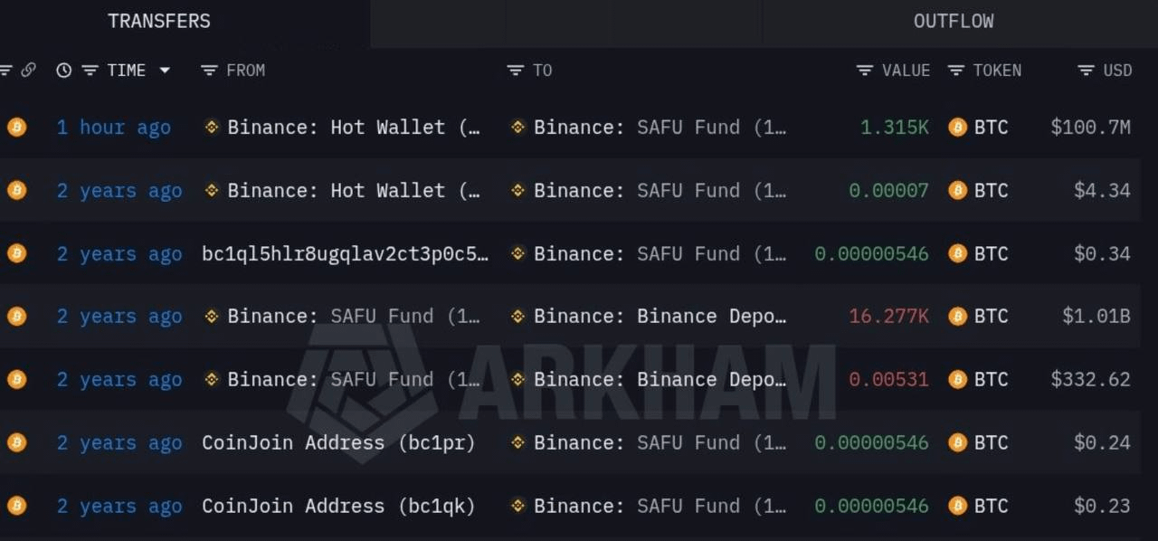 Binance a mutat $100.7M din Fondul SAFU în Bitcoin — în timp ce piața încă sângerează.