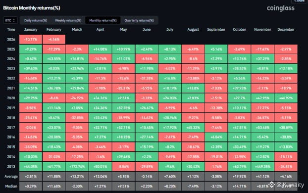 رسم بياني للعوائد الشهرية التاريخية للبيتكوين. المصدر: Coinglass