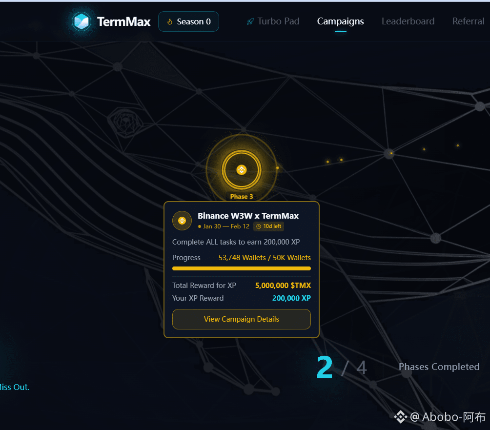 兄弟们,这是一个利用币安钱包插件签到,就能低门槛换取 TermMax未来代币收益的机会。