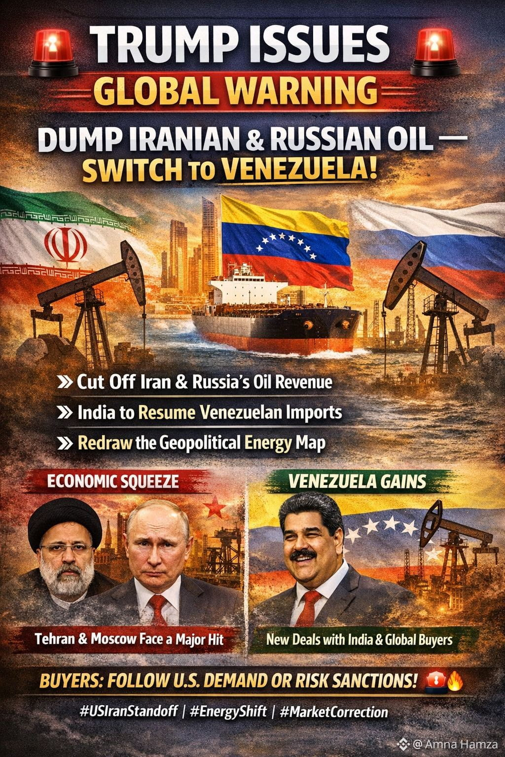 President Trump has signaled a major pivot in energy politics, urging countries to cut reliance on Iranian and Russian oil and consider Venezuelan crude instead. This comes as part of a broader U.S. strategy to weaken the revenue streams of Tehran and Moscow while reshaping global oil flows. �