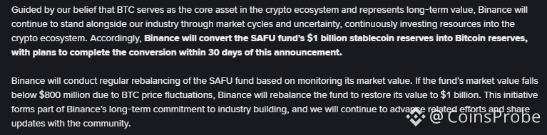 On January 30, 2026, Binance announced plans to fully convert the SAFU fund into Bitcoin over a 30-day period, citing Bitcoin’s role as a long-term hedge, its resilience, and its growing status as a core reserve asset within the crypto ecosystem.