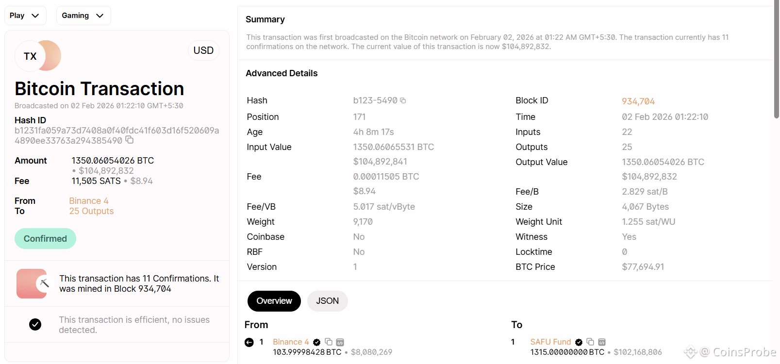 Binance’s first $100 million Bitcoin conversion for SAFU is now fully verified on-chain, underscoring both transparency and execution. As the remaining conversions unfold, the crypto community will be watching closely—not just for market impact, but for what this move represents in terms of institutional confidence and long-term strategy heading into 2026.
