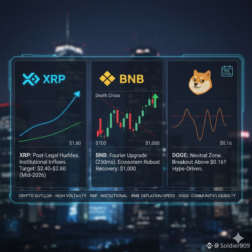 ➡️ Consensus: The trio is currently weathering a brief period of high volatility. XRP is leaning on institutional adoption, BNB on deflationary tokenomics and speed, and DOGE on its established liquidity and community-driven breakouts.