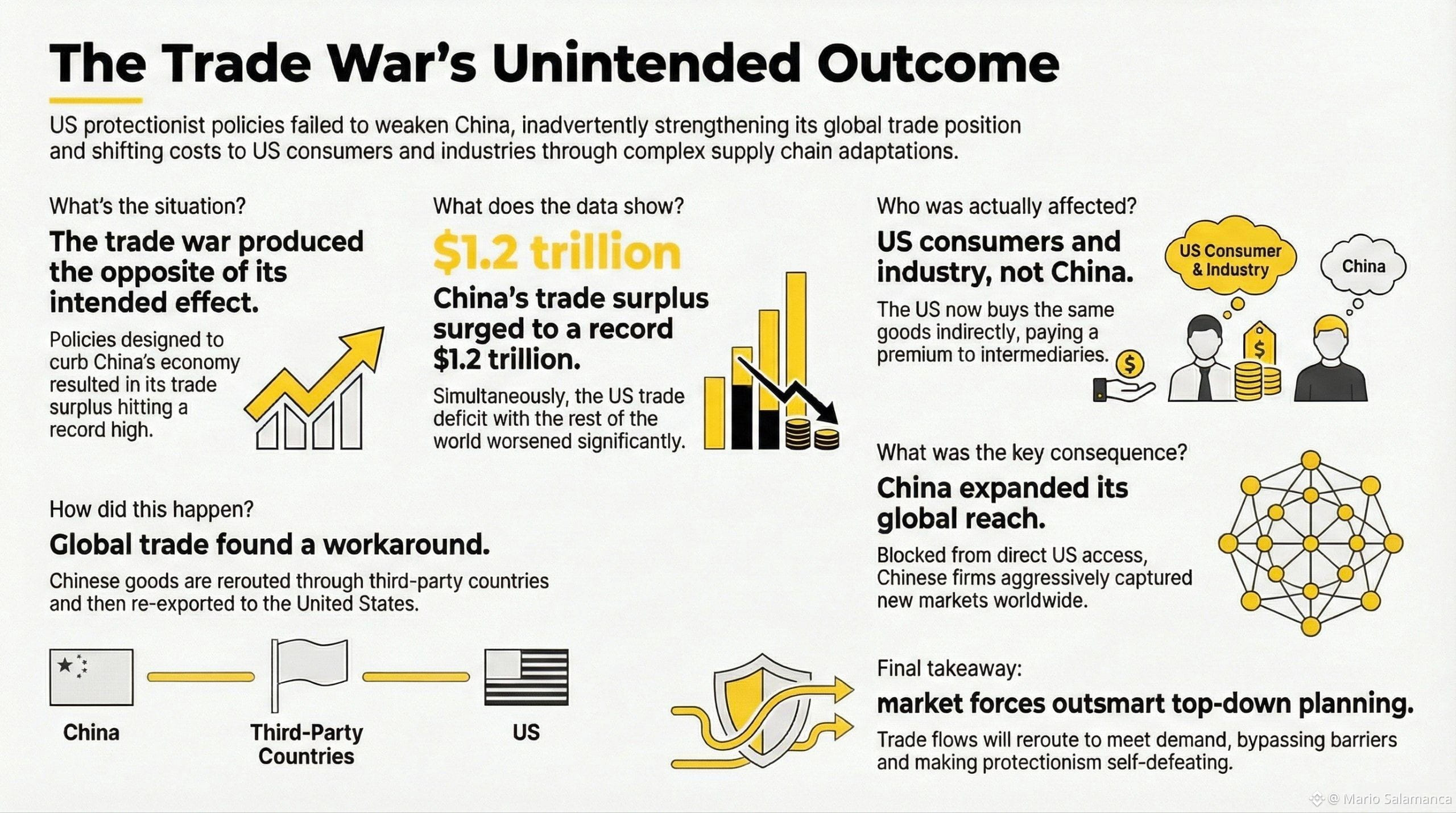 The comprehensive failure to achieve any of its primary objectives points not to a simple miscalculation, but to a fundamental misunderstanding of how modern global markets operate and adapt.