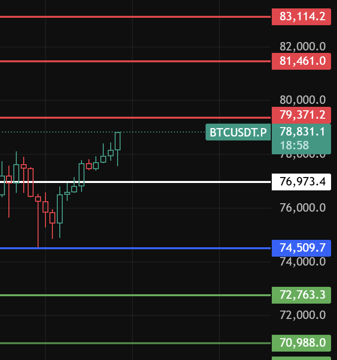 În noapte, urmăriți acest nivel de 77000, atâta timp cât revenirea nu rupe acest nivel, continuăm să ne mișcăm în revenire pe o perioadă de 1-2 ore, iar nivelurile de rezistență de sus trebuie urmărite în jurul valorilor 79370-81460-83115!