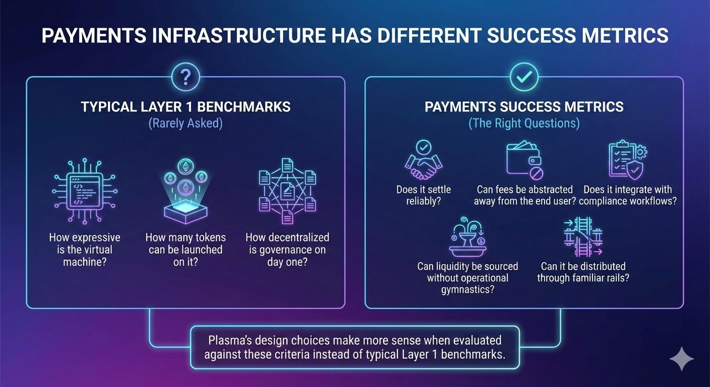 Calling Plasma a Layer 1 invites comparisons it does not need to win. It does not need to outperform general-purpose chains on developer flexibility or ecosystem breadth. It needs to be: