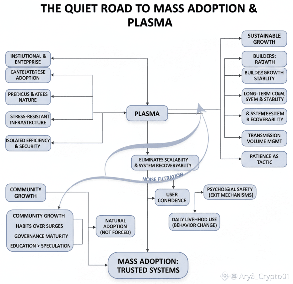 The overall vision of mass adoption in blockchain is usually one event, a breakout application, a wave of users, or an abrupt shift in perception. But the way things have always worked is that real adoption does not usually come with a boom. It arrives without any noise, and systems that operate in a consistent way day after day until people cease to think of the technology at all. Plasma goes well with this more subdued story. No, it was never intended to make headlines and head in conversations. It was meant to be weight bearing, to withstand pressure and to allow decentralised systems to be inhabitable by the common man long before they correctly recognised that they were engagement in something revolutionary.