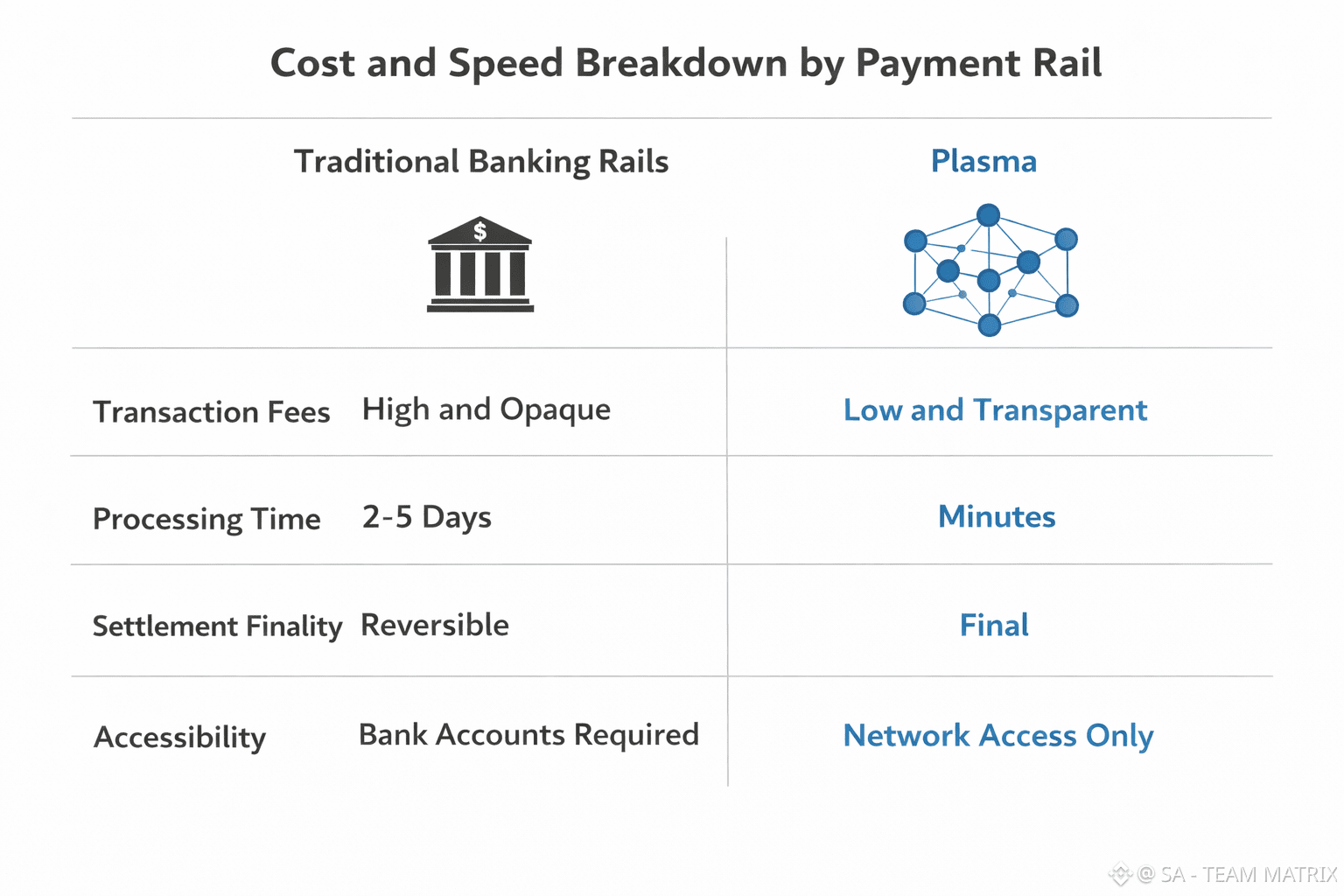 The cost is where you really see the difference. Traditional banks have a lot of expenses like compliance systems and old infrastructure and teams that take care of reconciliations. They pass these costs on to users by charging fixed fees and giving them exchange rates. Plasma is different because it uses a system that's more automated. The fees, for transactions are usually lower and easier to understand. Users know how much it will cost before they send any money. They do not have to worry about extra money being taken out when it arrives at its destination.