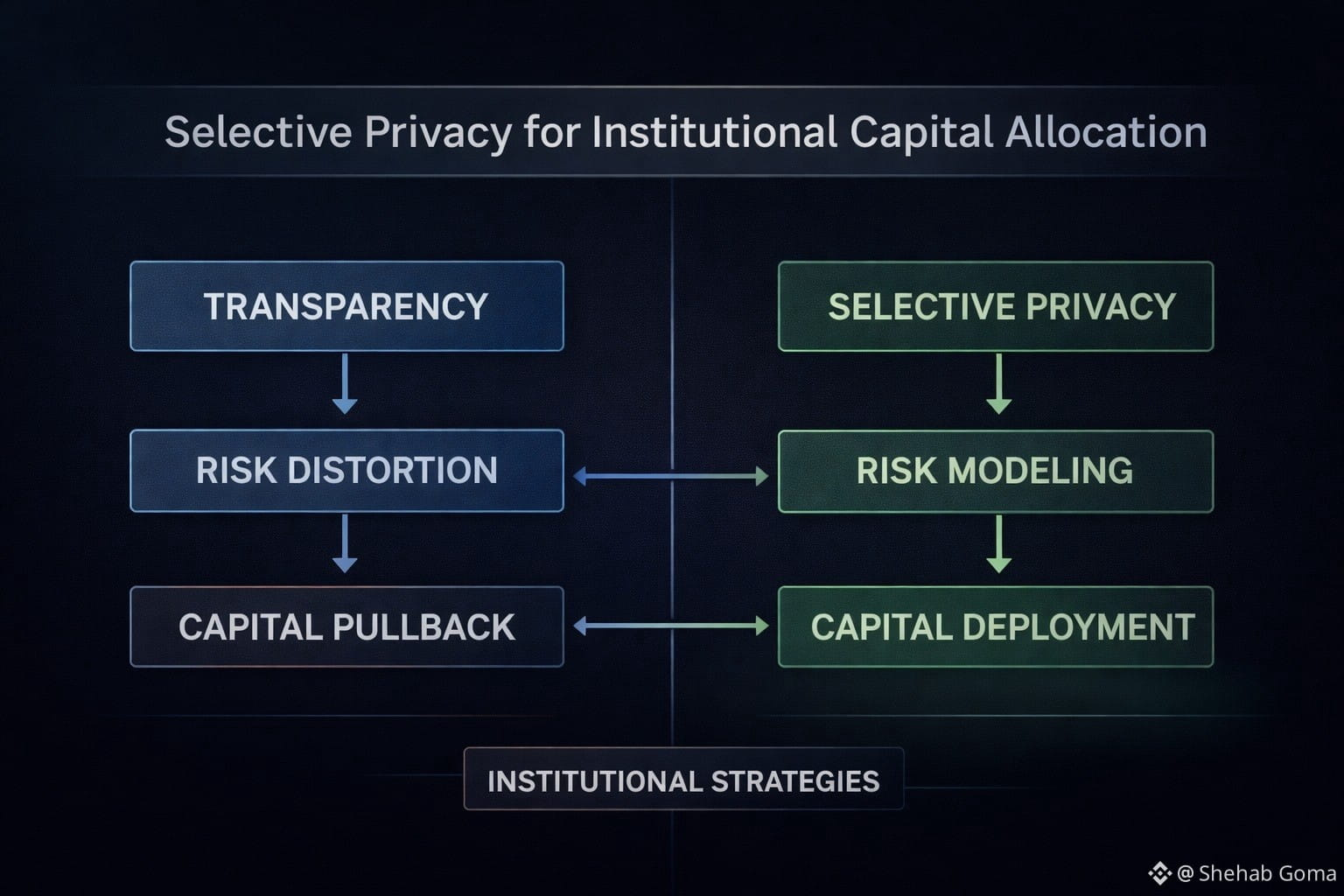 On fully transparent blockchains, every transaction is visible in real time. While this may sound ideal from a retail perspective, it introduces structural risk for institutional participants. Front-running, strategy leakage, signaling risk and forced exposure disclosure all distort how institutions assess downside and allocate capital.