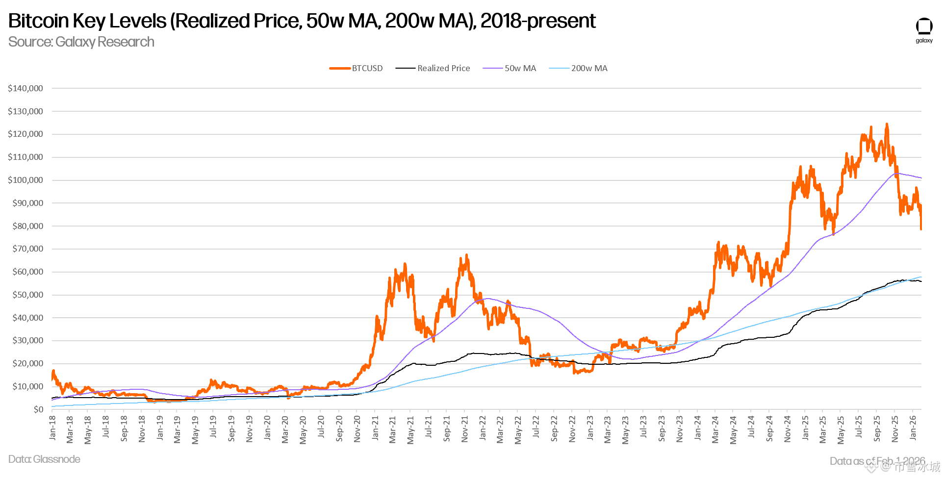 现在情况是:50 周均线早在去年 11 月就破了,而 200 周均线就在 5.8 万美元 等着。