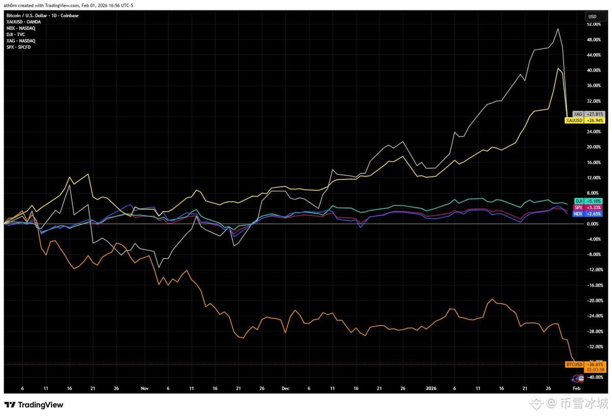 从去年第四季度开始,世界局势动荡,关税、债务危机满天飞。本来这是比特币大显身手的时候,结果它拉胯了。资金更愿意去买传统的黄金、白银和大宗商品。在乱世里,大家似乎暂时忘了比特币的“避险属性”。